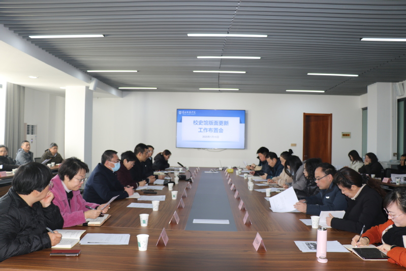 1月15日上午,beat365校史馆版面更新工作布置会在新长校区图书馆二楼会议室召开,学校党委常委、副校长毕凤珊,副校长徐华出席会议。