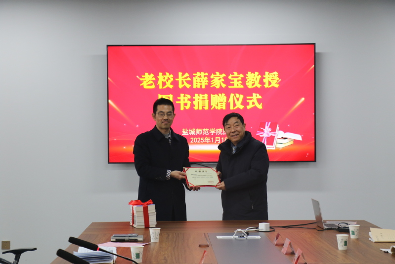 薛家宝深情回忆在盐师工作的岁月,表达对学校事业发展的深深关切和殷切期盼。他表示,作为“老”盐师人、“老”外院人,对学校有着深厚的感情。自己很爱读书,也喜欢收藏书籍,此次捐赠的图书都是他精心挑选的,希望能够为相关专业的师生科研学习提供参考,传承书香,弘扬读书精神,在书香中前行成长。