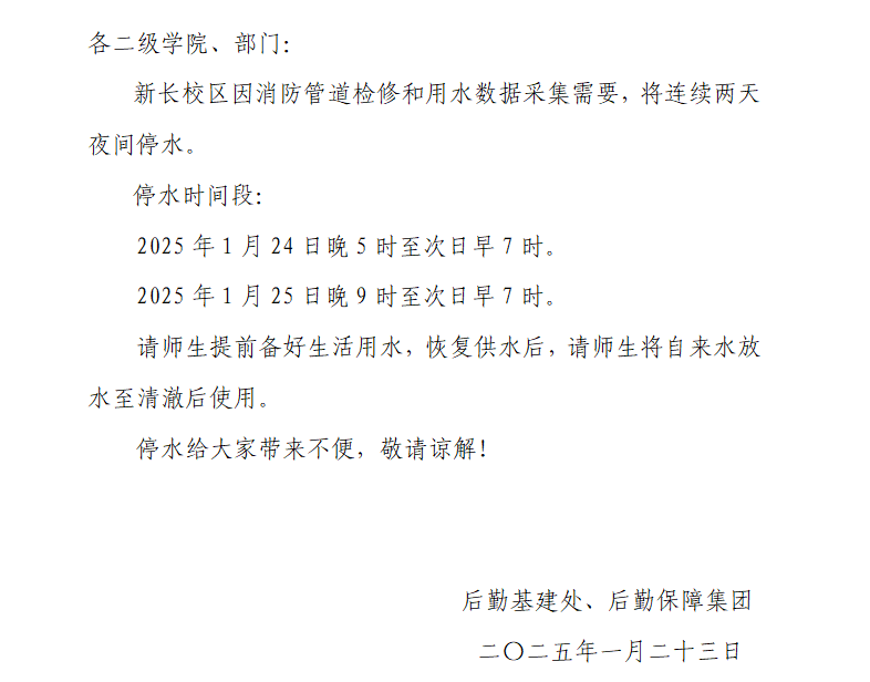 关于新长校区临时停水的通知