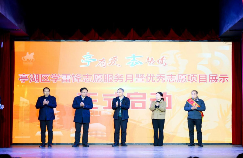 金骏培、张云云、朱广东和志愿组织、志愿者代表共同登台,启动学雷锋志愿服务月活动。陈诚发布学雷锋志愿服务月重点项目,法学院作为赋能单位参与多个项目的实施。
