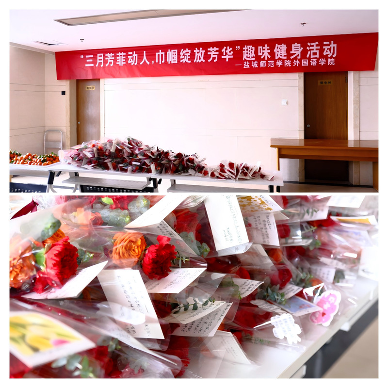 3月5日下午,外国语学院在通榆校区主楼举办“三月芳菲动人,巾帼绽放芳华”趣味健身活动,活动设置跳绳和踢毽子两个项目,既考验个人技巧,又充满趣味性。活动现场,女教师身轻如燕,绳子上下翻飞,五彩的毽子在空中划出优美的弧线,女教师灵活的身姿和娴熟的技巧赢得阵阵掌声。同学们还纷纷为女教师送上鲜花和美好祝福,表达了对女教职工辛勤付出的感谢。