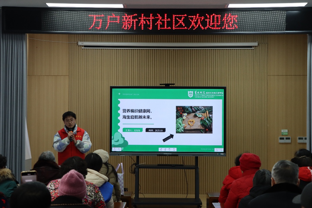 3月5日,海洋与生物工程学院联合盐城市疾控中心走进万户新村社区,开展主题为“急救守护健康梦 食品开启幸福程”的志愿服务活动。活动中,志愿者围绕食品营养与健康,向社区老人普及食品营养与安全常识,讲解如何辨别食品质量、如何科学储存食物等实用知识,此外,志愿者还结合自身专业知识,用通俗易懂的语言向老人讲解日常生活中常见的急救知识。此次活动既为社区老人送去了温暖,也展现了青年学子服务社会、奉献爱心的青春风采。大家用实际行动践行雷锋精神,为构建和谐社区贡献力量。