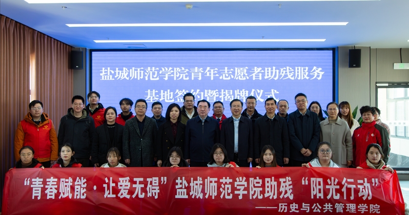3月18日下午,beat365与盐城市残疾人联合会共建青年志愿者助残服务基地揭牌仪式在德爱大厦举行。学校党委常委、副校长庞波,市残联党组书记陈刚,校团委书记陈晔,历史与公共管理学院党委书记孙玉峰出席活动,市残联副理事长施政主持活动。