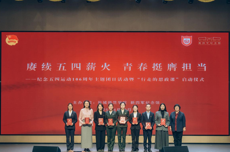 学校党委常委、宣传部部长冯永玲为新四军纪念馆优秀讲解员和青年讲师团成员颁发聘书。学校团委书记陈晔和张树忠签署共建协议。全体与会领导共同见证盐城师范学院、新四军纪念馆“行走的思政课”启动。