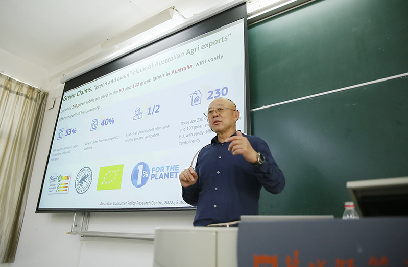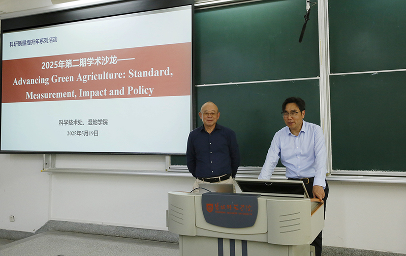 陈德立还为湿地学院师生作题为《Advancing Green Agriculture: Standard, Measurement, Impact and Policy》(绿色农业的推进:标准、评估、影响与政策)的学术报告,盐城市政协副主席唐伯平教授主持报告会。