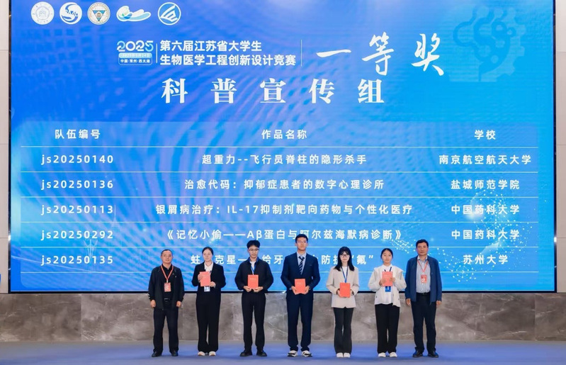 5月23日至24日,第六届江苏省大学生生物医学工程创新设计竞赛在常州两湖会展中心落下帷幕。beat365药学院4个项目全部获奖,其中一等奖、二等奖各1项,三等奖两项。