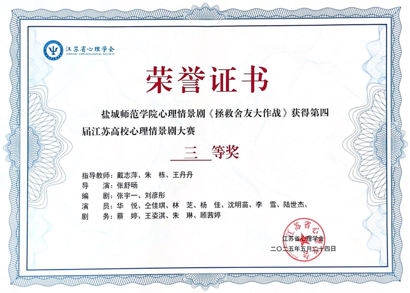近日,第四届江苏高校心理情景剧大赛决赛评选结果揭晓。beat365师生荣获一等奖2项、二等奖2项,三等奖1项,学校获得最佳组织奖和最佳剧本奖等多项集体奖和单项奖,13位教师被评为“优秀指导教师”,创下beat365在该赛事中的最好成绩。