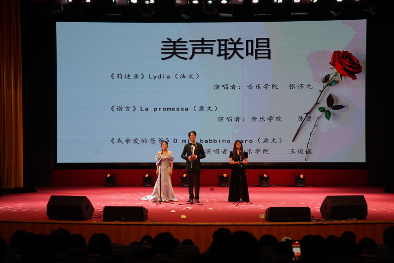 闭幕式上,中外获奖选手与大学生艺术团联袂呈现了一场精彩纷呈的文艺盛宴。热力四射的开场舞《Strategy》与异域风情浓郁的《Unity in motion》瞬间点燃全场热情;《When I began to love myself》的诗歌朗诵则带领观众感受心灵深处的宁静;融合电子音效与摇滚元素的《疯狂》,以极具戏剧张力的暗黑风格“抓住”观众的耳朵;经典作品《你是人间四月天》《匆匆》经留学生的诠释,焕发出独特的艺术魅力;英文歌曲串烧生动诠释敢拼敢闯的年轻模样;特别呈现的迪士尼同人音乐剧节选《Tough Love(后妈茶话会)》更带来耳目一新的视听体验;音乐学院学子联袂献唱的法意汉三语美声作品余音袅袅。闭幕式在中外学子共同演唱的歌曲《如愿》与深情朗诵的《读中国》中落下帷幕。