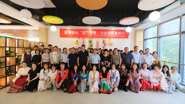 5月29日下午,历史与公共管理学院“民族团结‘粽’有情,毕业扬帆爱同行”迎端午暨欢送毕业生主题活动在新长校区西食堂二楼举办。活动现场,粽叶、糯米、红枣等食材整齐摆放,弥漫着浓浓的节日氛围。在工作人员的指导下,师生们纷纷化身“包粽能手”,大家一边包粽子,一边分享着大学生活的点滴。活动中,学院还为过生日的毕业生举办了毕业季集体生日会,民族学生代表则向与会师生送上亲手书写的挂件、书签。师生共同欣赏婉转动人的舞蹈《寄明月》,尽显民族风采的《不丹舞》表演。