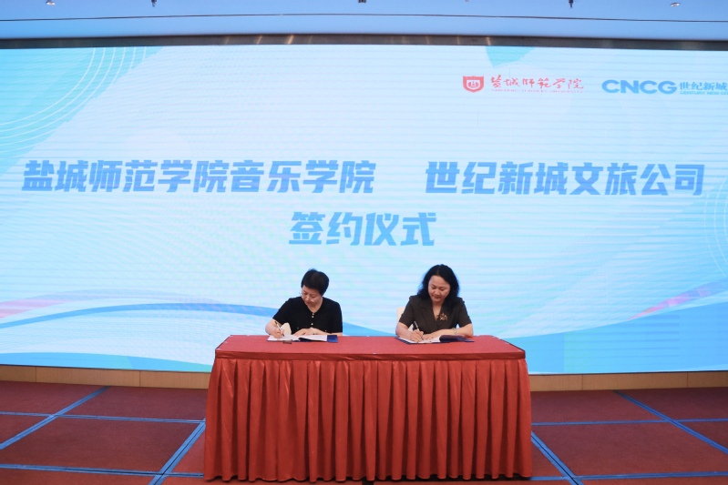 学校党办校办、人事处、招生就业处、音乐学院以及盐城经济开发区社事局、世纪新城集团负责人参加签约仪式。