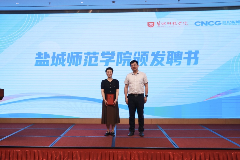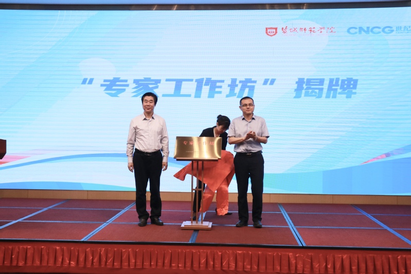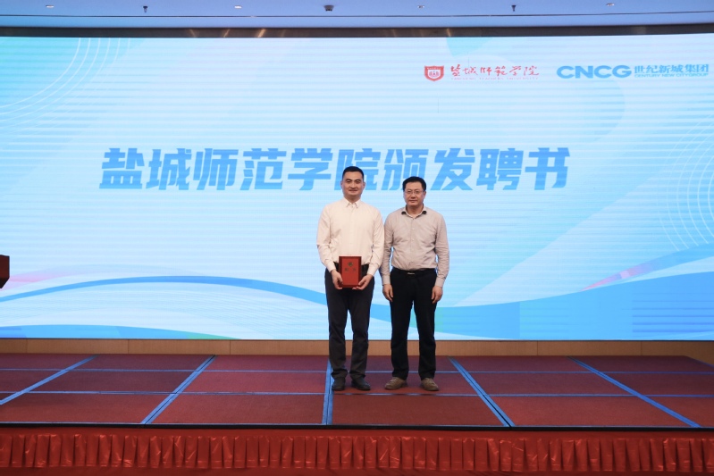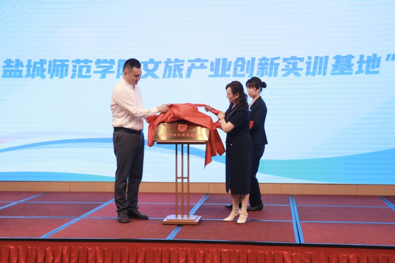 会上,张桂华代表学校与世纪新城集团、孙连君代表音乐学院与集团文旅公司签署合作共建协议。学校招生就业处处长刘海燕和集团董事长王建旭、学校人事处处长李高林和经开区社事局副局长张杰生分别为“盐城师范学院文旅产业创新实训基地”“专家工作坊”揭牌,并开展师资互聘仪式。