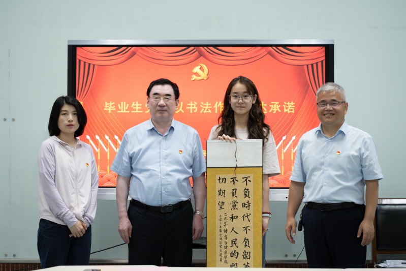 庞波围绕“廉洁”主题,对毕业生党员提出三点期望。一要不忘初心使命,塑造党员模范形象,时刻牢记为人民服务的宗旨,发挥先锋模范作用。二要严格要求自我,遵守党纪党规。三要持续提升能力,以扎实的专业知识和积极进取的精神,创造美好未来。庞波还为毕业生党员赠送党章和毕业留念,并一同重温入党誓词。