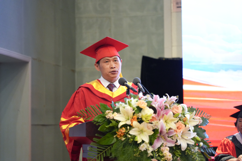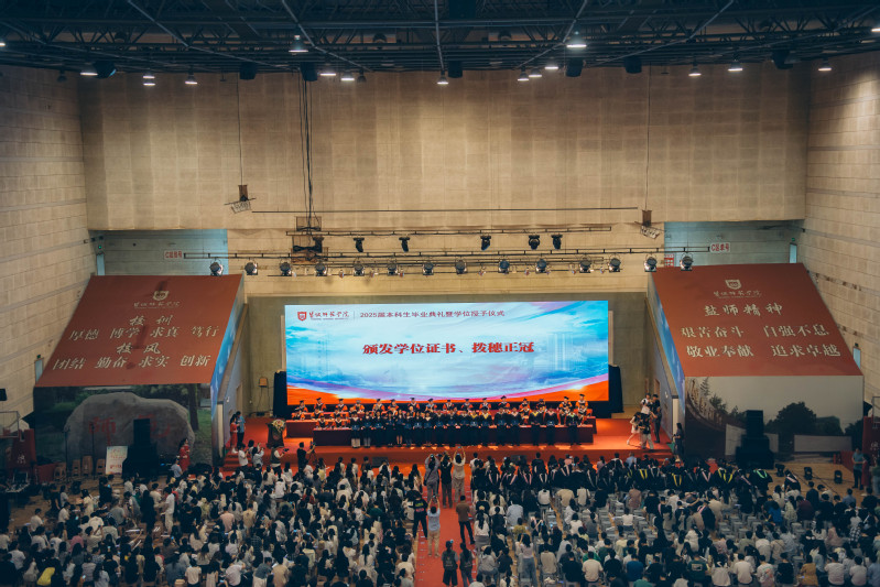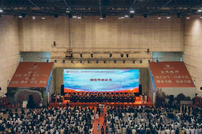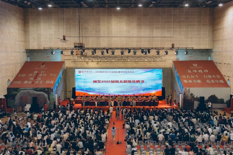 学校党委常委、宣传部部长冯永玲,党委常委、组织部部长岳峰,党委常委、统战部部长费正皓在主席台就座。学校学位委员会成员、机关部门负责人、各二级学院负责人、教职工代表、二级学院学工人员代表、校友代表以及2025届毕业生代表参加毕业典礼。
