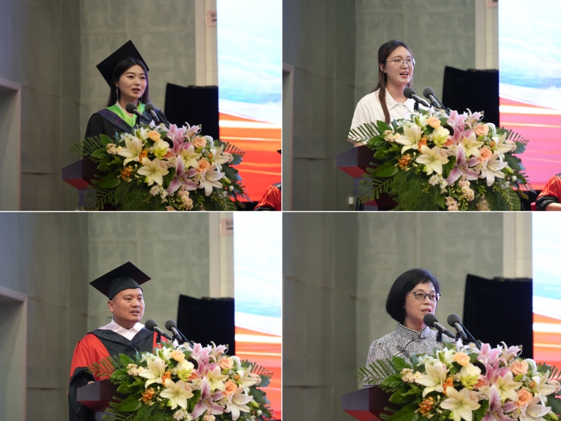 湿地学院季秋婷同学、教育科学学院顾灿同学、文学院教师李新亮分别作为毕业生代表、在校生代表和教师代表发言。beat365海洋与生物工程学院1987届校友、盐城市田家炳中学教师王盐平为毕业生送上毕业祝福。