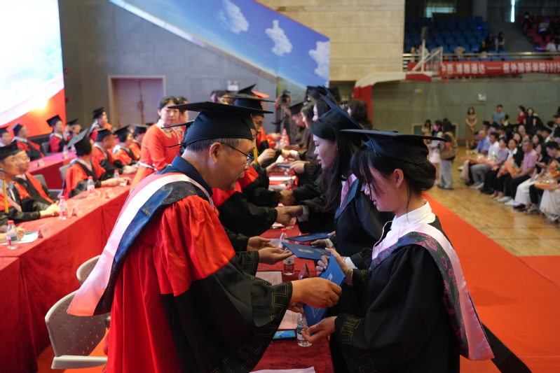 学校党委副书记于建江宣读学校优秀毕业生、荣誉毕业生表彰决定,党委常委、副校长毕凤珊宣读授予学士学位的决定。主席台领导为毕业生代表颁发优秀毕业生荣誉证书、毕业证书和学位证书,并为毕业生拨穗正冠。