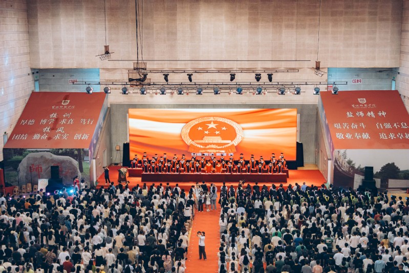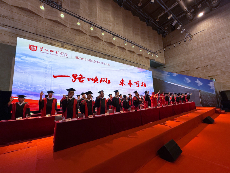 毕业典礼开始前,学校举办毕业歌会,全场收看了“盐师出高徒(2025版)”主题视频、各二级学院对2025届毕业生的祝福视频,热烈庆祝2025届毕业生圆满完成学业,踏上人生新征途。此外,学生家长、广大校友、社会各界人士线上收看毕业典礼直播。