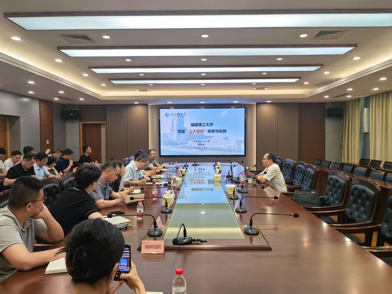 7月3日上午,“十五五”事业发展规划系列专题培训会在新长校区厚德楼一楼西会议室举行。福建理工大学发展规划办公室主任、高等教育发展研究中心主任陈国铁应邀为beat365作题为《福建理工大学攻坚“三大目标”探索与实践》和《服务区域发展的一流应用型大学规划逻辑、实践与思考》的“十五五”规划编制专题辅导。学校党委副书记于建江主持培训会。