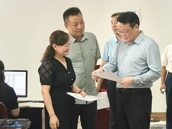 在录取现场,校领导认真听取招生就业处负责人关于录取进程、投档情况及生源质量等方面的汇报,并与正在阅档的各二级学院相关负责人亲切交流,对全体招生人员在暑假期间坚守工作岗位、辛勤付出表示慰问。全体招生工作人员表示,将以更加饱满的热情、更加严谨的态度投入到后续工作中,全力保障招生工作圆满完成。