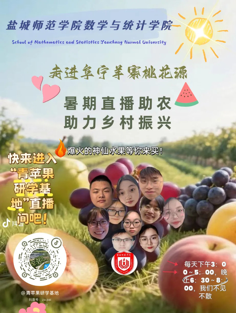 7月上旬,数学与统计学院暑期实践团队来到阜宁县羊寨镇开展暑期助农公益直播实践活动。