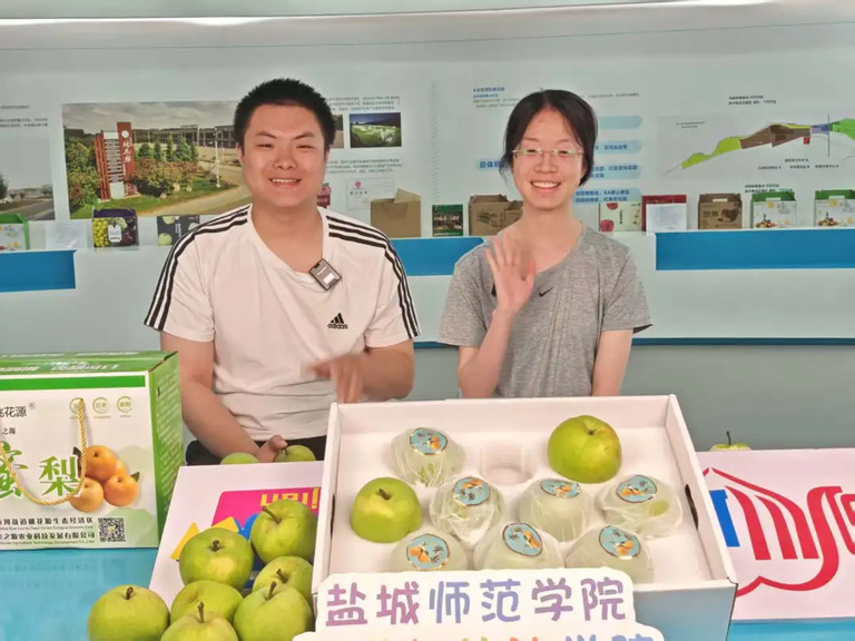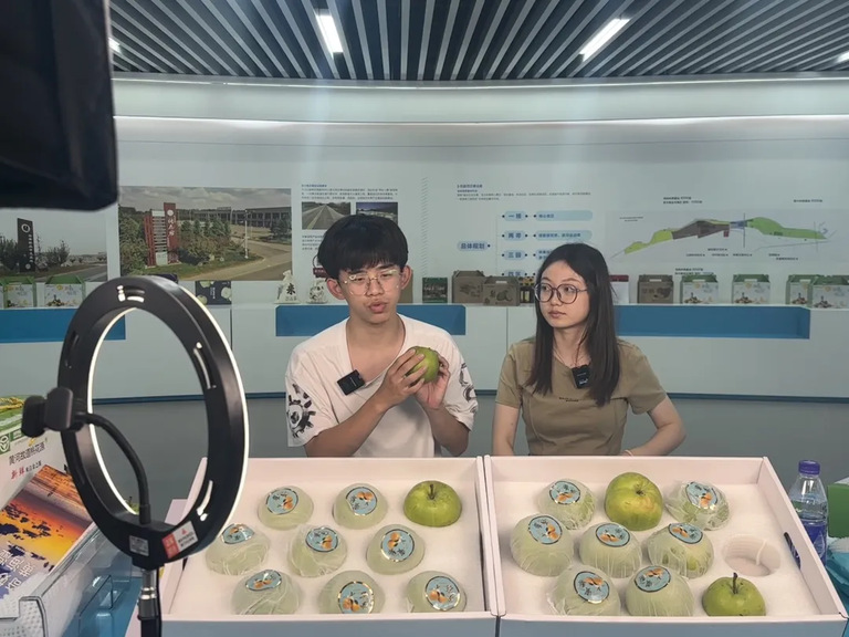 “家人们,快看这蜜梨,它可是梨中的‘甜蜜代表’,果肉细腻多汁,甜度超高,一口下去满是幸福感。”直播镜头前,实践团队的学生们活力满满,一边向网友展示蜜梨的模样,现场切开果实让大家看到鲜嫩的果肉,一边详细介绍蜜梨的生长环境、生长周期以及种植过程。为了让网友更真切地感受蜜梨的甜美,学生现场品尝点评,评论区互动频繁,订单量不断增加。直播首日便卖出近300斤,为果农带来实实在在的收益。