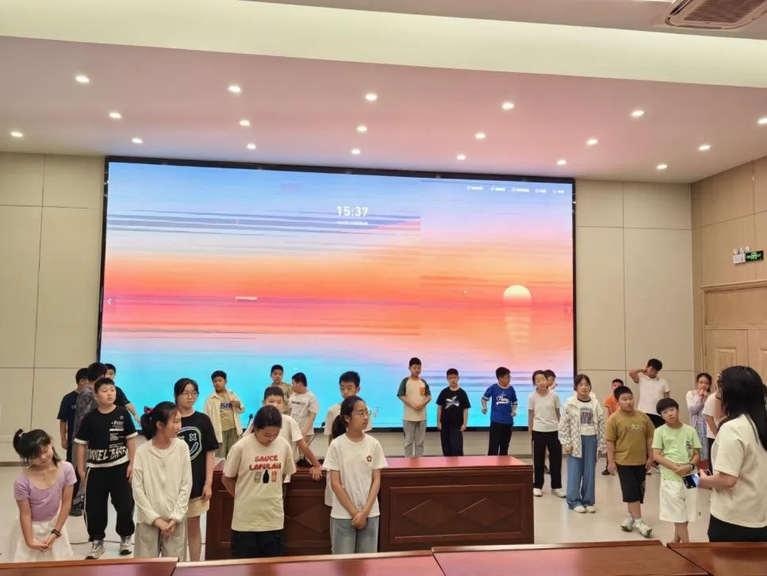 在大庆路实验学校,实践团队开设国学课程,志愿者通过“甲骨文探秘”和“经典诵读”活动,带领学生感受汉字演变,培养文化自信。课程以互动形式展现传统文化魅力,让校园书香满溢。在盐城小学,实践团队开设融合多元文化的暑期课程,开设藏族舞蹈、英语配音和主题辩论等活动,提升学生艺术素养、语言能力和批判性思维,拓展国际视野。在建军路小学,实践团队开设科学启蒙课程,通过“二十四点”思维游戏、“纸杯投影仪”手工等活动,激发学生创新思维和科学兴趣。