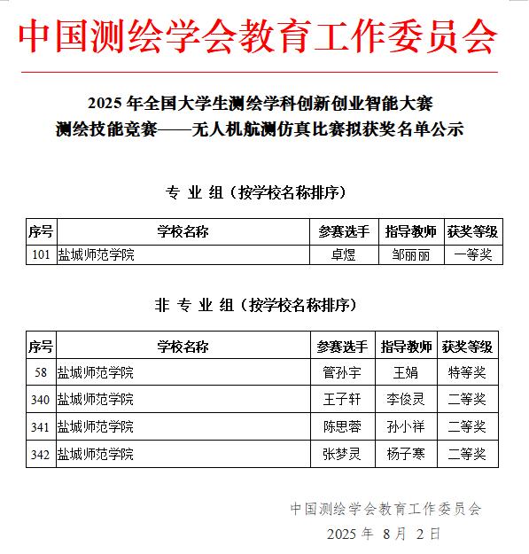 本次大赛共有来自全国400多所高校的7000多名学生报名参赛。beat365参赛学生凭借扎实的专业基础,在专业组无人机航测赛道获一等奖1项;在非专业组的数字测图、测绘程序设计、机载激光雷达和无人机航测四个赛道,获特等奖1项、一等奖2项、二等奖6项,为学校赢得荣誉。