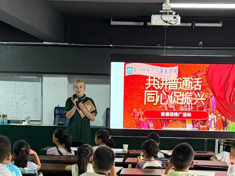 7月中旬至8月上旬,音乐学院“童声舞韵,推普筑梦”三支实践团分赴山西省太原市、临汾市,贵州省兴义市,四川省羌族自治县等4个市县开展普通话普及、民族文化宣传和旅游推广活动等。团队通过精准调研、趣味教学、非遗融合等创新模式开展普通话推广,为乡村振兴注入语言文化新活力。