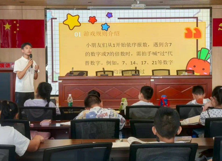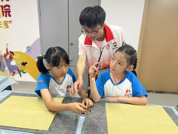 在第一次课“破冰游戏”中,志愿者胡锦杭同学以“逢7必过”破冰小游戏开场,引导小朋友们开展自我介绍,迅速拉近志愿者与青少年的距离。在随后的“拇指画”课上,孩子们以指代笔,蘸彩按压,在画纸上自由挥洒,直观感受色彩魅力,在“非遗漆扇”课上,孩子们亲手绘制装饰扇面,体验传统技艺之精妙,提升审美与动手能力。“健康小课堂”以健康飞行棋为媒介传播科学知识,涵盖饮食、运动、防病等方面,助力孩子们养成良好习惯。每日“作业辅导”环节,志愿者耐心答疑解惑,帮助孩子们巩固知识,提升学习效果。“七彩假期”课程丰富多彩,涵盖艺术创作(绘画、手工)、知识科普(财商启蒙、民族文化、爱国教育、廉洁文化、安全知识)、思维训练、健康指导、心理关怀、价值观引导、传统文化、语言学习及团队协作等方面,全方位助力青少年成长。