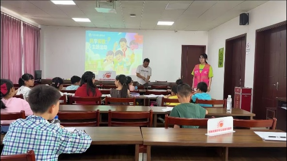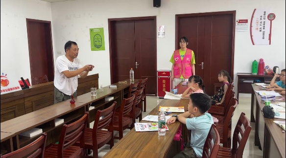 在苏州市广福村校外辅导站,“我们开班了”的主题标语映照着孩子们纯真的笑脸。这里,“五老”志愿者沈建林老师凭借丰富教学经验倾囊相授,湿地学院大学生宣讲员沈雨桐则用青春活力带来趣味课程,点燃孩子们的学习热情。一老一少默契配合,如同温暖的代际接力,共同为孩子们构筑起丰富多彩的暑期成长乐园。