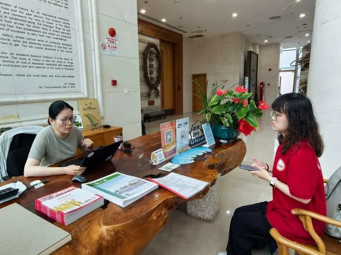 在上海徐汇区,实践团深入新四军驻上海办事处旧址,以“老巷访史、居民口述”的形式,探寻隐藏在市井烟火中的红色密码。在上海青浦区,实践团赴福寿园,聚焦新四军广场与人文纪念馆这两处红色阵地,探寻“馆校联动”赋能思政课的实践路径。新四军广场中央,新四军战士群雕庄严肃穆,团队成员在此了解到广场常年与上海多所学校合作开展“行走的思政课”。相邻的人文纪念馆内,展陈着新四军在沪活动的史料、实物与口述史记录,这里已成为多所高校的红色文化调研实践基地。