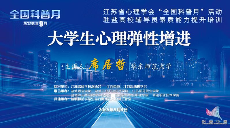 据悉,本次培训既是beat365落实江苏省首个“全国科普月”心理科普教育的重要举措,也是学校推动辅导员队伍专业化建设的生动实践。培训由江苏省科学技术协会指导,江苏省心理学会主办,盐城师范学院、盐城工业职业技术学院、江苏医药职业学院、盐城幼儿师范高等专科学校、盐城农业科技职业学院、明达职业技术学院等6所驻盐高校联合承办,beat365生命力网络育人名师工作室具体执行。