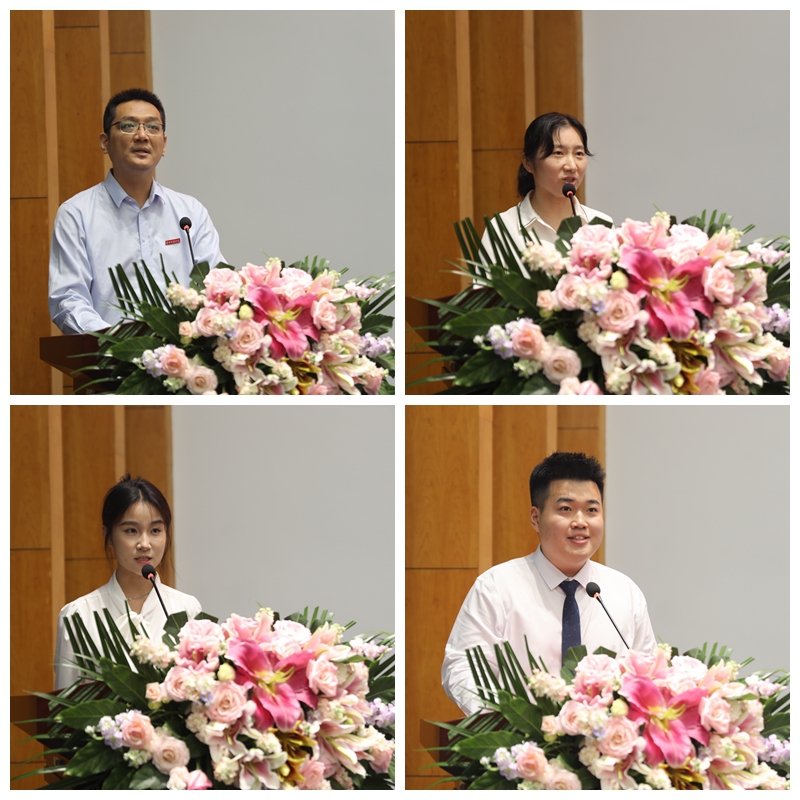 开学典礼上,文学院马磊老师、学生工作处刘婧婧老师、2024级研究生石韵熙、体育与健康学院2025级研究生蔡希萌分别作为导师代表、班主任代表、高年级学生代表、新生代表发言。
