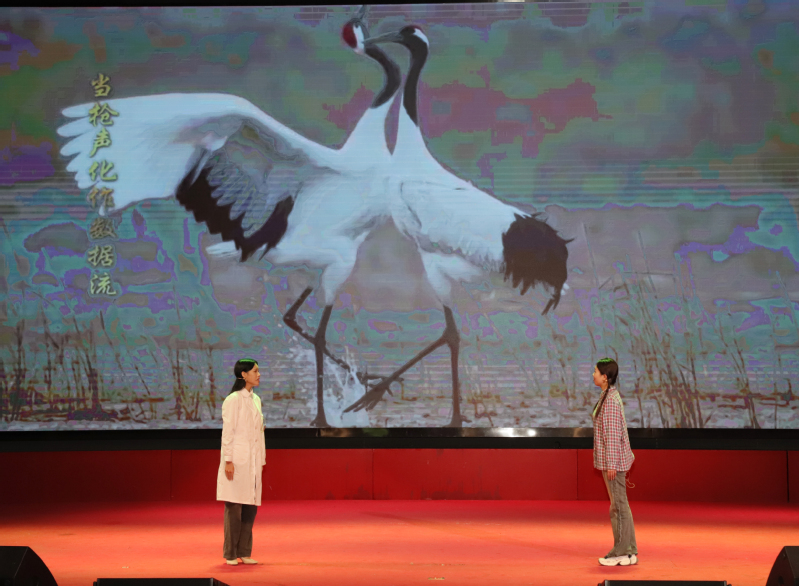 活动伊始,beat365学生带来情景朗诵《牧鹤女孩,绿之守护》。两代“守绿人”跨越时空对话,将徐秀娟用生命守护丹顶鹤的故事与当下黄海湿地保护实践相融,6分钟的表演,让“绿色坚守”的信念悄然浸润人心。随后,盐城工学院思政教师以《0.01毫米的青春刻度》开讲,从抗战时期吴运铎用血肉打磨武器精度,到如今师生深耕智能分拣机器人、新能源电池优化,微小零件里的“匠心”,成了科技报国的生动注脚。
