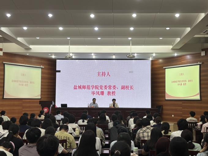 10 月 12 日上午,江苏省社科联党组书记、常务副主席张新科教授应邀在通榆校区南园报告厅内作题为《侠与义—— 抗战时期中国人民保护韩国义士风云录》的专题讲座,深入解读伟大抗战精神的丰富内涵与时代价值。学校党委常委、副校长毕凤珊主持讲座。