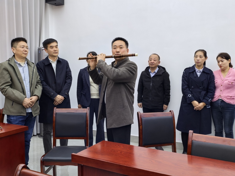 交流活动在盟员于基厚激情的二胡独奏《战马奔腾》中拉开序幕,激昂旋律点燃现场热情。竹笛博士宋克歆带来《扬鞭催马运粮忙》,仿佛把大家带入了丰收时节热闹非凡的运粮场景。盟员高金玉带领美术学院学生现场挥毫泼墨,一幅幅展现乡村美景的国画作品跃然纸上,将乡村的宁静与美好展现得淋漓尽致。新冈社区两位文艺爱好者还与盟员开展二胡合奏,他们默契地配合赢得阵阵喝彩。