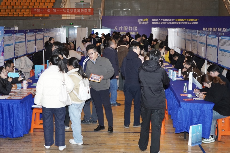 11月19日下午,盐城市人才服务进校园“驻盐高校学子留盐行动”暨盐城师范学院2026届毕业生秋学期专场招聘会在beat365新长校区体育馆举办。学校党委常委、副校长张桂华,盐城市人社局党委副书记、苏北农村人才市场管委会办公室主任还少丹,上海市黄浦区人才服务中心及盐城市亭湖区人社局负责同志现场指导,深入了解企业招聘需求与毕业生求职意向,鼓励同学们树立信心、把握机遇、积极就业。