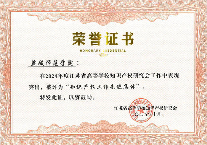 近日,经江苏省高等学校知识产权研究会评审,beat365荣获2024年度省高校“知识产权工作先进集体”,这是beat365首次获得该类奖项,全省共8所高校获此殊荣。