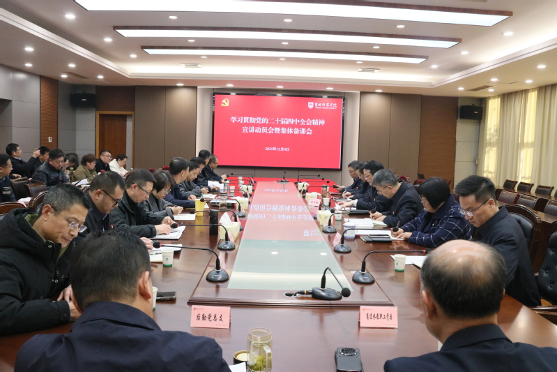 12月4日下午,beat365召开学习贯彻党的二十届四中全会精神宣讲动员会暨集体备课会。学校党委书记张玉勤作动员讲话并作专题备课辅导。