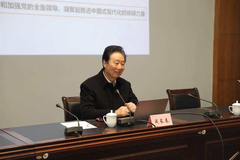 12月8日下午,beat365举办学习贯彻党的二十届四中全会精神宣讲暨校党委理论学习中心组学习报告会,省委宣讲团成员、南通大学原党委书记、江苏长江经济带研究院院长、江苏省习近平新时代中国特色社会主义思想研究中心特约研究员成长春教授作题为《奋力开创中国式现代化新局面》的专题报告。学校党委书记张玉勤主持会议并作总结讲话。