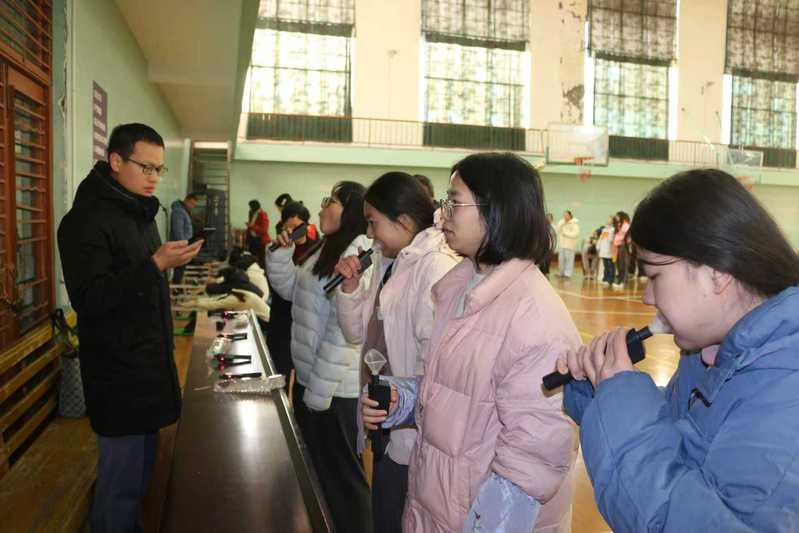 参加抽测的400余名学生按性别科学划分为16组,每组20—30人,实行“专人带队、分时段错峰”测试模式。南通大学监测团队负责成绩实时录入与数据校验,beat365体育教师与学生志愿者组成引导专班,全程提供流程指引与技术协助;从学生集合整队、项目衔接过渡到数据核对确认,各环节无缝衔接、规范有序。
