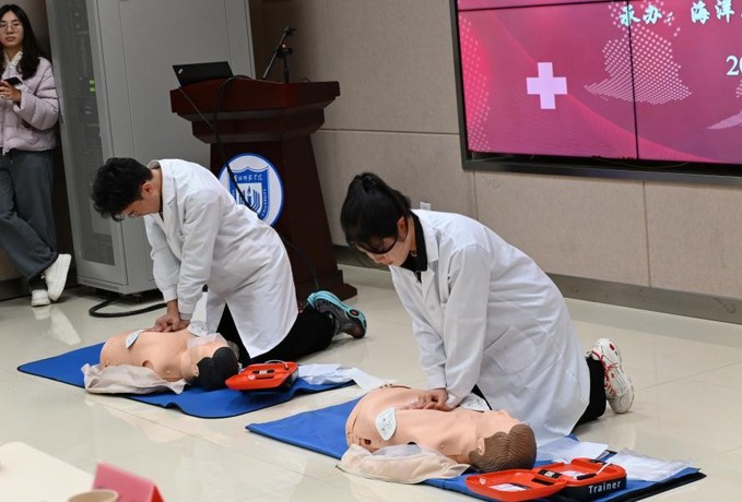 本次比赛由校团委主办,海洋与生物工程学院、盐城市红十字会协办,全校18支代表队进入决赛。竞赛分为急救知识笔试和技能操作考核两部分。理论试题内容包括红十字运动基本知识、应急救护知识、应急避险常识及人体解剖、生理基础知识等内容,全面检测选手的专业知识储备。技能操作环节主要考核成人单人心肺复苏及AED机操作。快来人呀,这里有人晕倒了”“我是红十字救护员”“女士,请帮我拨打120”……在选手们专业的动作和沉稳的语言中,心肺复苏操作考核有条不紊地进行。