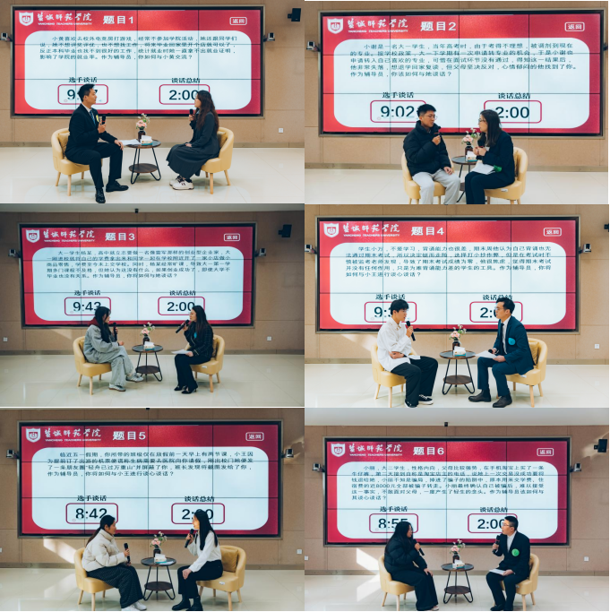 在谈心谈话环节中,辅导员面对模拟的学生成长困惑场景,以温情对话化解疑虑、以专业引导明晰方向。用一次次有温度、有深度、有力度的对话,传递关怀与力量,彰显辅导员队伍过硬的沟通技巧和育人水平。