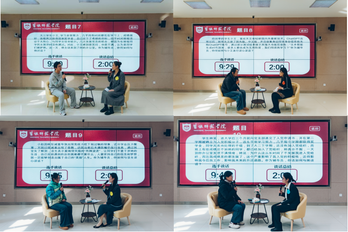 本次大赛紧扣新时代高校学生工作新形势新要求,聚焦辅导员九大职能和核心素养,在设置基础知识测试、案例研讨、谈心谈话三个传统环节的同时,创新增设AI数字人展评单项赛,为全校辅导员搭建“以赛促学、以赛促练、以赛促建”的交流提升平台。