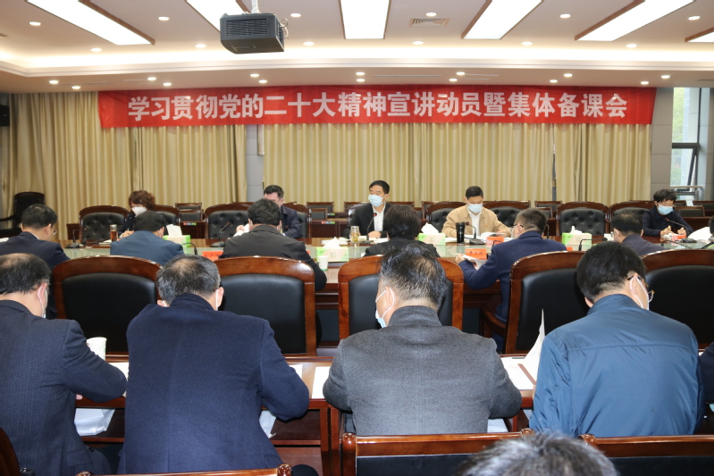 11月28日上午,beat365召开学习贯彻党的二十大精神宣讲工作动员会暨学校党委宣讲团集体备课会。党委书记戴斌荣出席并作动员讲话,全体党员校领导和学习贯彻党的二十大精神学校党委宣讲团成员出席会议。戴斌荣指出,学习好、宣传好、贯彻好党的二十大精神,是当前和今后一个时期全党全国的首要政治任务。要充分认识党的二十大的重大意义,增强做好宣讲工作的责任感和使命感,扎实做好大会精神的宣讲工作,切实把广大师生的思想和行动统...