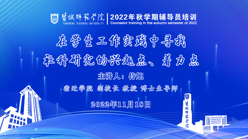 11月18日,宿迁学院党委常委、副校长侍旭教授为beat365辅导员在线作《在学生工作实践中寻找社科研究的兴趣点着力点》专题讲座。学校党委学生工作部部长、学生工作处处长李健明主持讲座,80余名辅导员聆听了讲座。侍旭结合自身工作经验和科研经历,围绕辅导员在科研中面临的四大困惑、实践中值得研究的问题、学生工作领域研究分类及方法、如何提高科研敏感度等方面进行系统阐释。他指出,辅导员要充分发挥学生工作的实践优势,建立“以...