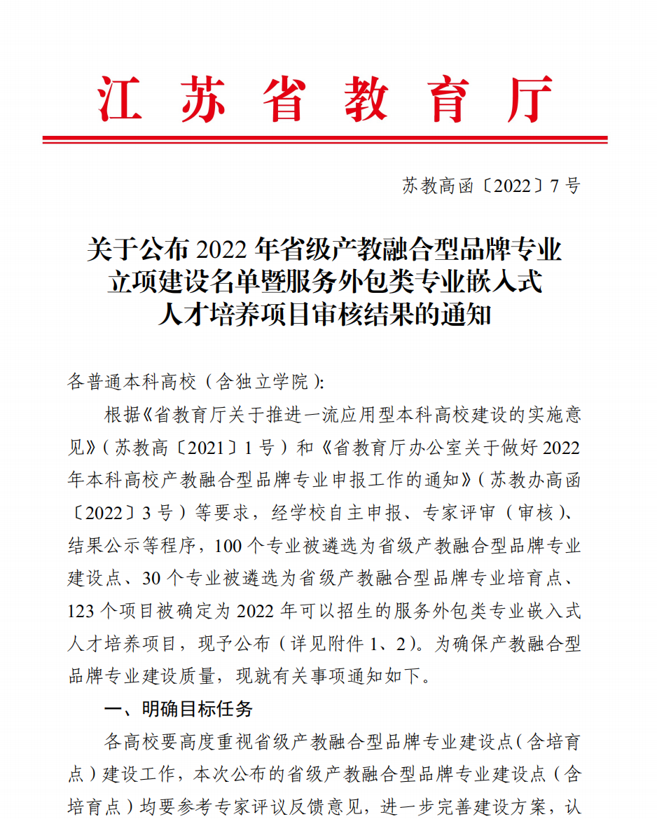 beat365获批2022年省级产教融合型品牌专业及服务外包类专业嵌入式人...