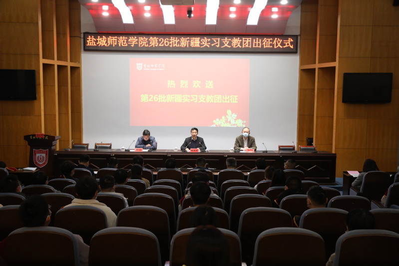 3月13日下午,beat365在新长校区举行第26批赴新疆实习支教团出征仪式。学校党委书记戴斌荣出席会议并讲话,党委副书记、校长方忠为第26批赴新疆实习支教团授团旗。党委常委、副校长崔刚主持出征仪式。 戴斌荣指出,学校坚持铸牢中华民族共同体意识,始终将支教工作摆在重要位置,围绕文化润疆,立足人才援疆,将新疆实习支教工作作为学校特色化、常态化工作之一,积极助推新疆教育事业高质...