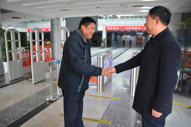 1月31日,除夕之日,学校党委书记戴斌荣,党委常委、副校长庞波、张桂华等一行来到新长校区和通榆校区电力开闭所、保卫安全技防值班室、图书馆等场所,代表学校党委和行政走访慰问仍坚守在工作岗位上的教职员工,向他们致以新春问候与美好祝愿,同时了解寒假期间学校的值班情况,叮嘱他们要时刻绷紧安全防线,坚守岗位,保障校园安全。党委办公室、校长办公室、保卫处、后勤保障集团等部门负责同志陪同走访慰问。