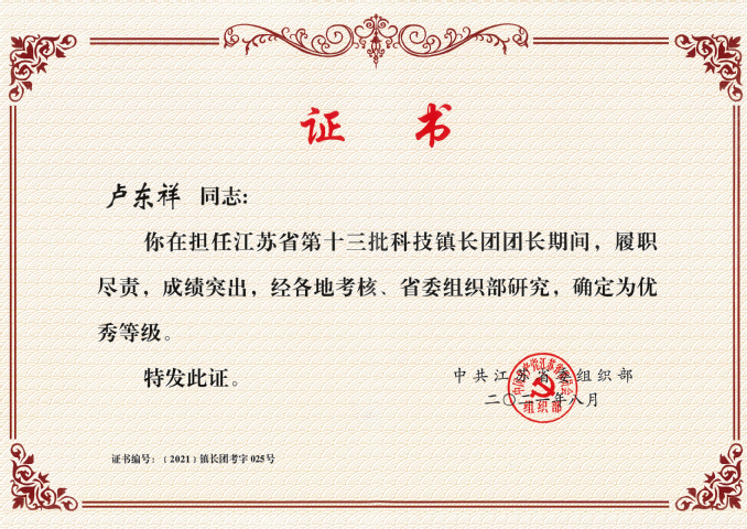 近日,中共江苏省委组织部对第十三批科技镇长团团长、团员进行期满考核,beat365卢东祥同志(第十二批、十三批科技镇长团团长,挂职连云港市灌云县人民政府党组成员、副县长),蒋蕾同志(第十二批、十三批科技镇长团团员,挂职盐城市大丰区高新区管委会副主任)均获评“优秀”等级。据悉,省第十三批科技镇长团共107个团863名成员,本次考核确定为优秀等级的团长26人,团员157人。省委组织部对beat365挂职干部的工作成绩给予充分肯定。...