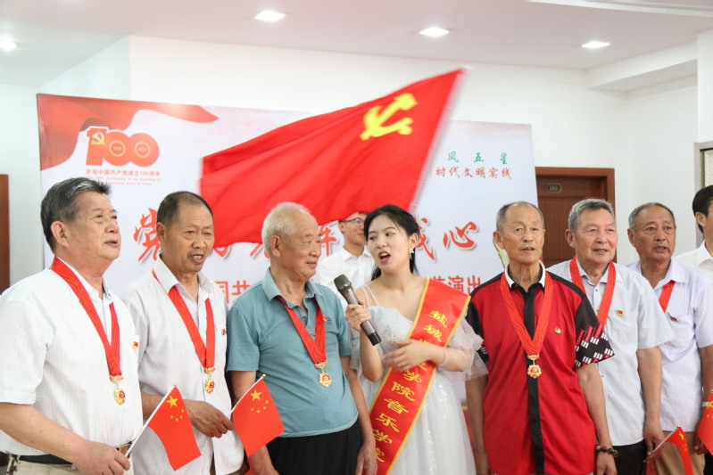 “当看到老党员们自发站起、齐声高唱的时候,我把话筒递给了身旁的爷爷,自己降了一个音调,为大家伴好奏、和好音。那一刻,我觉得老党员们成为了闪耀的C位主唱……”正值中国共产党百年华诞,7月1日下午,盐城师范学院音乐学院文化艺术服务团走进五星街道印汽社区,和“在党50年”老党员们一起,为党的百年华诞举办了一场别开生面的“音乐生日会”。“唱支山歌给党听,我把党来比母亲…”,当熟悉的旋律响起,在场...